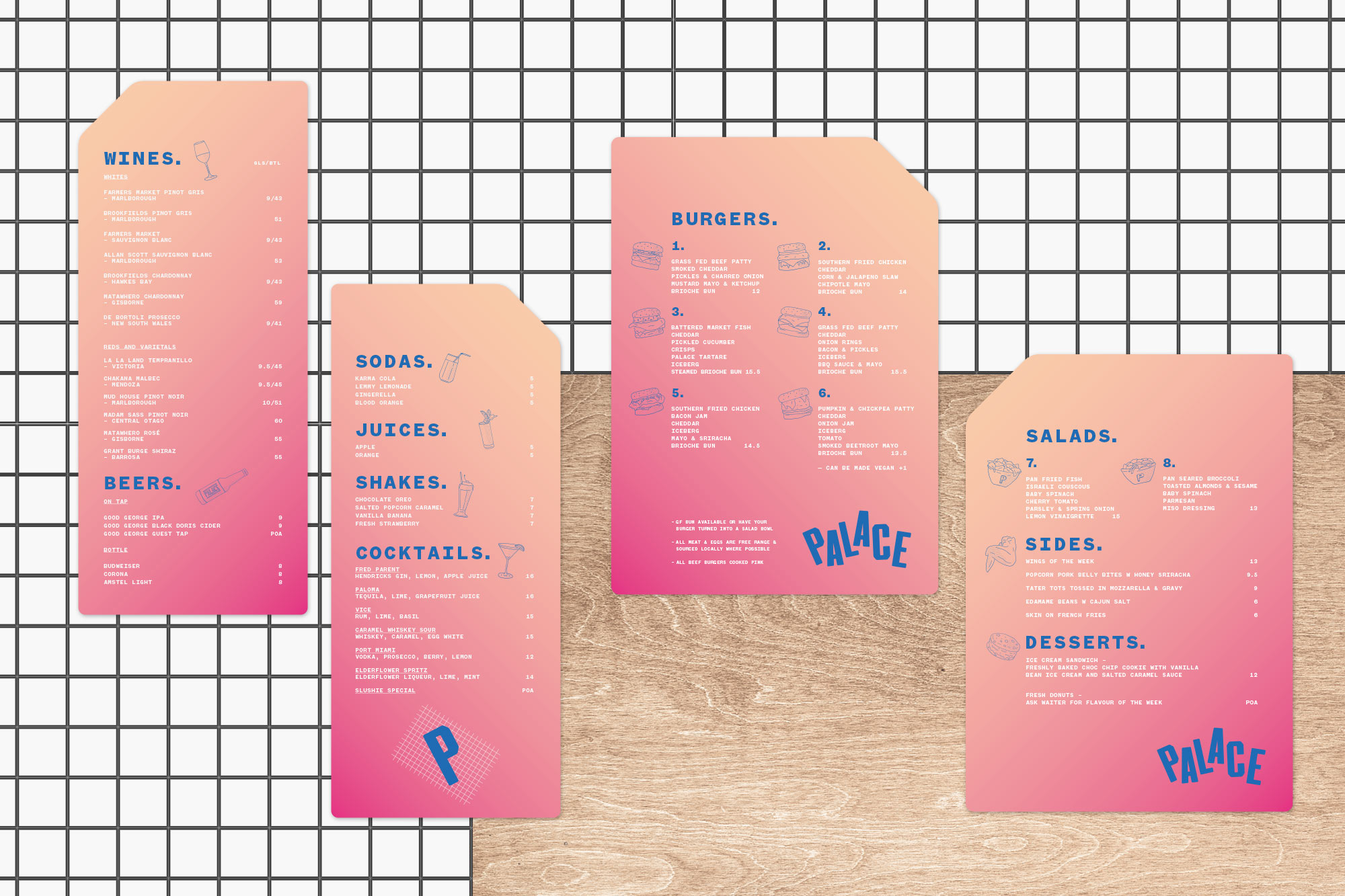 Identity and packaging for Palace — a burger joint in Mount Maunganui.